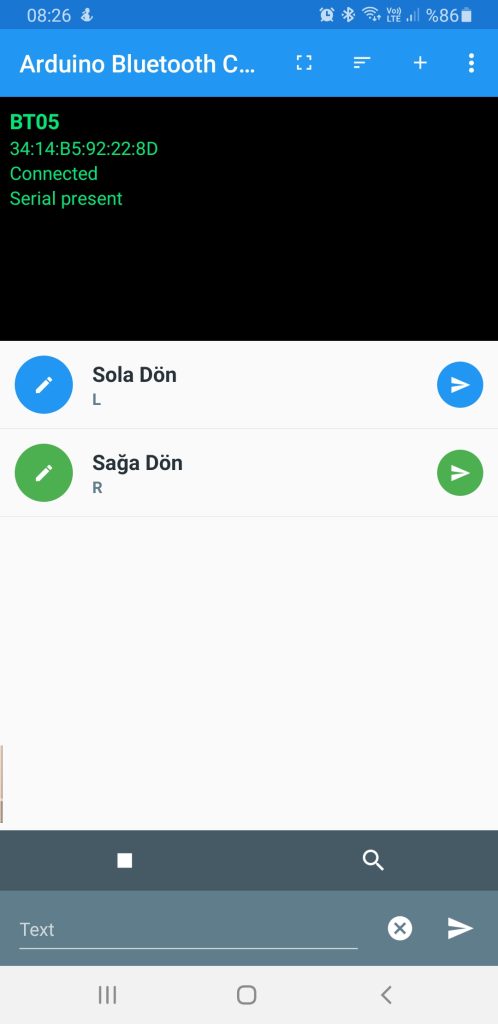Son olarak bu donanımı kontrol edebileceğiniz bir bluetooth uygulasına ihtiyacımız olacak. Bu projede Google Play ‘den indirebileceğiniz Arduino Bluetooth Controller kullanılmıştır.
