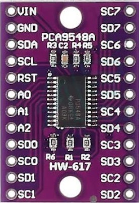 PCA9548A, NXP (eski adıyla Philips) tarafından geliştirilen 8 kanallı bir I2C anahtar/çoklayıcı IC’sidir. I2C veri yolunu genişletmek, aynı I2C adresine sahip birden fazla cihazın tek bir veri yolunda bir arada bulunmasını sağlamak veya belirli işlemler için I2C cihazlarını izole etmek için kullanılır.