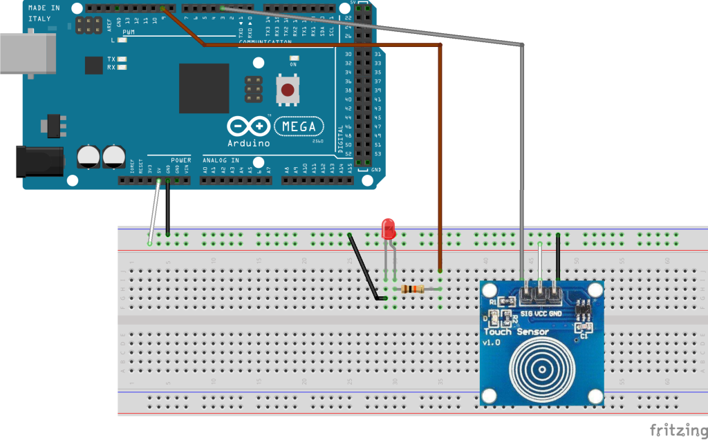 Bu örnekte TTP223B modülü kullanılarak Attachinterrupt() metodunun uygulaması yapılmıştır. Bu metodun görevi, çağrıldığı anda, çalışan programa ara vererek sizin tanımladığınız metodu çalıştırmaktır. Önemli ayrıntı, buton Pin bağlatınızı mutlaka kesme işlemi için atanmış olanlardan seçmeniz gerektiğidir.